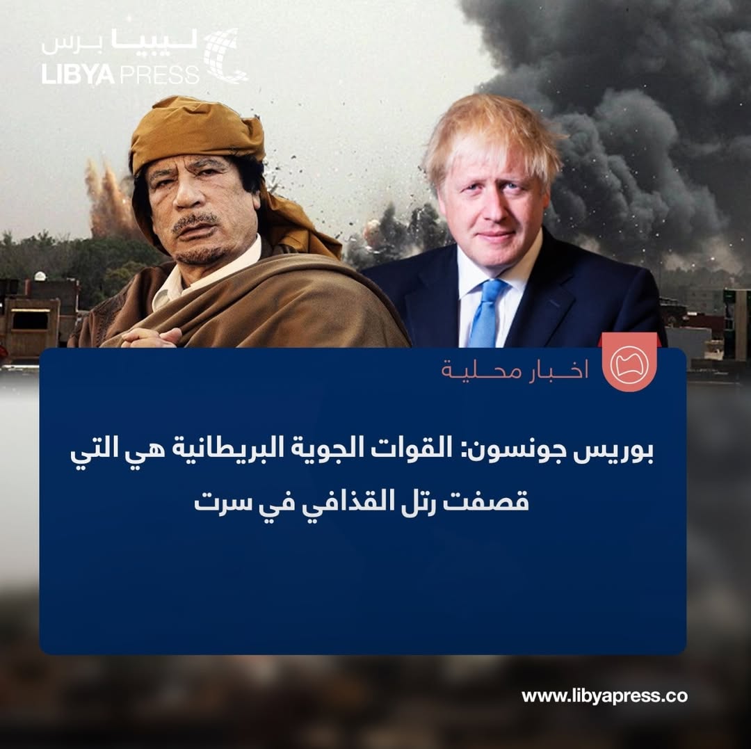 رئيس الوزراء البريطاني الأسبق، بوريس جونسون، في مقابلة تلفزيونية: القوات الجوية البريطانية هي التي قصفت رتل القذافي في سرت