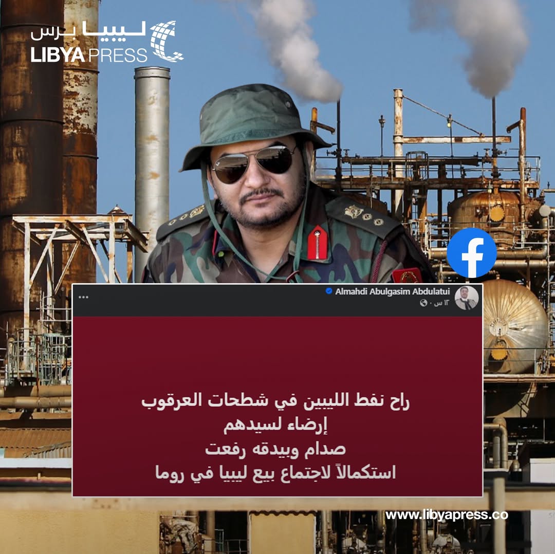 الناشط السياسي من #مصراتة، المهدي عبد العاطي: راح نفط الليبيين، إرضاء لسيدهم صدام، استكمالاً لاجتماع بيع #ليبيا في #روما. #ليبيا_برس