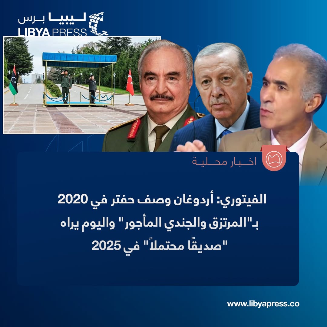 ــ قمة التحول التركي كانت من وصف أردوغان لحفتر بأنه “مرتزق وجندي مأجور” عام 2020، إلى “صديق محتمل” معه في 2025.
