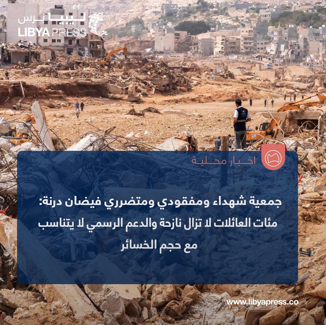 المراجع القزيري، رئيس جمعية شهداء ومفقودي ومتضرري فيضان #درنة: مئات العائلات لا تزال نازحة حتى الآن ولم تتمكن من العودة إلى منازلها.