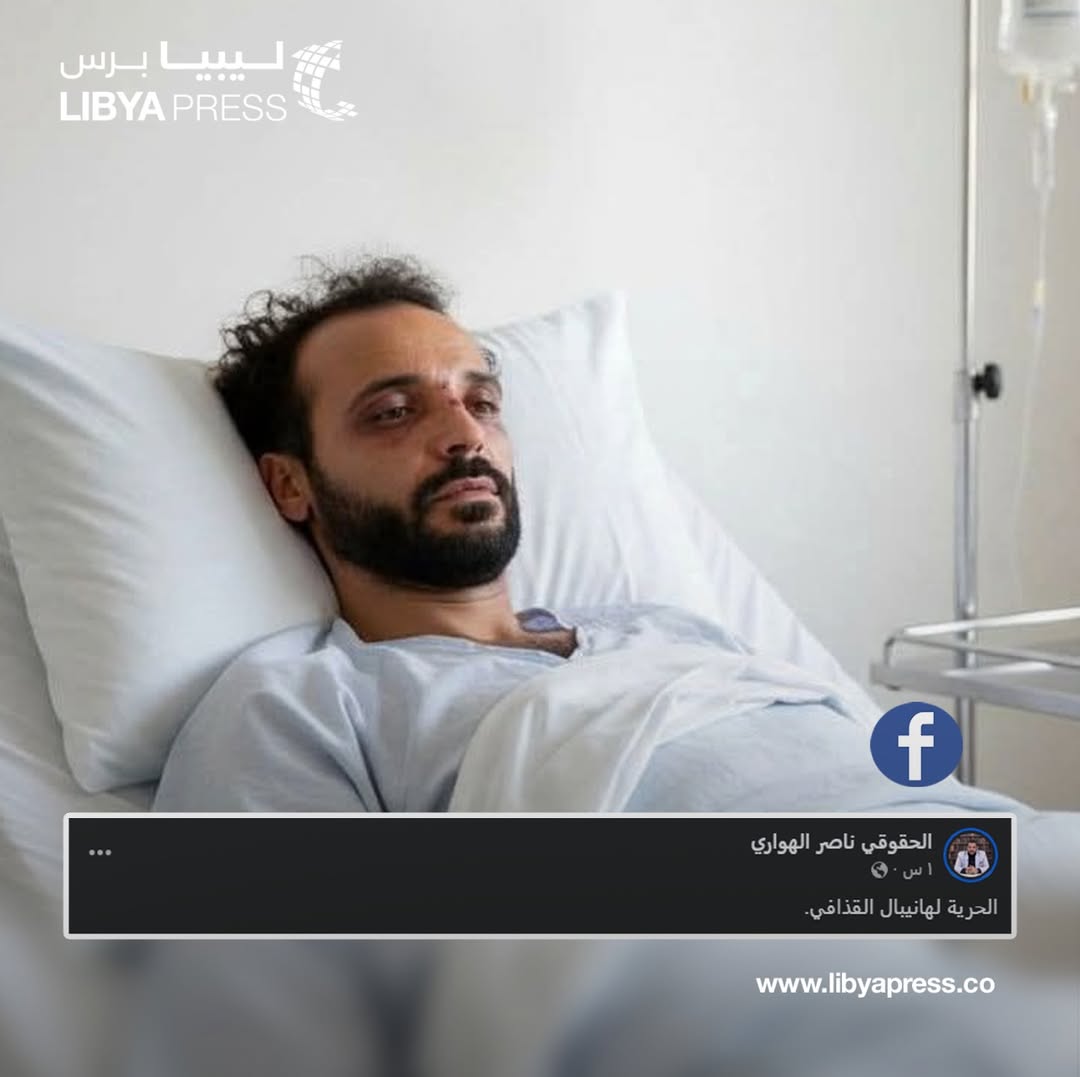 الناشط الحقوقي ناصر الهواري ينشر صورة لهانيبال القذافي بعد نقله للمستشفى إثر تدهور حالته الصحية.. ويُعلق: الحرية لهانيبال القذافي. #ليبيا_برس