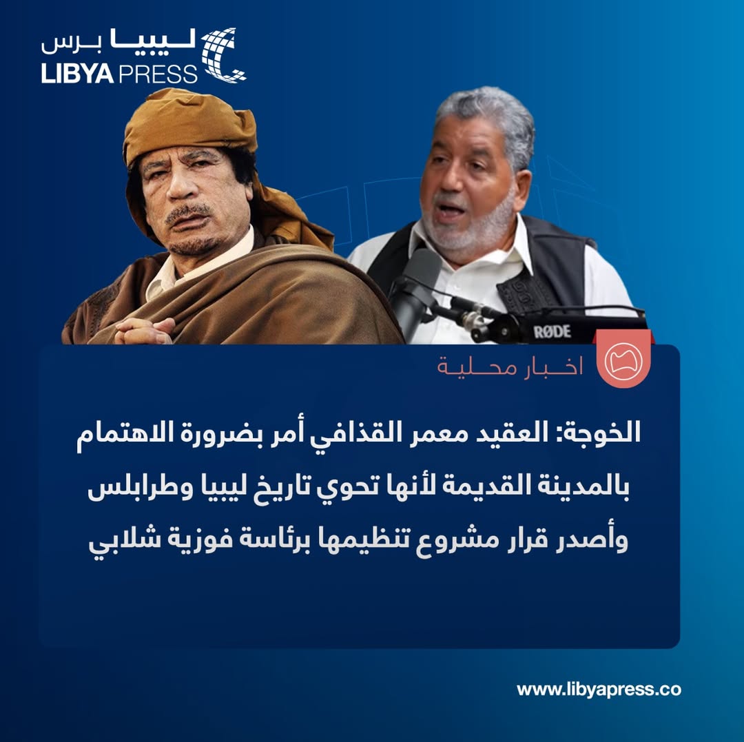 الكاتب وعضو جهاز إدارة المدينة القديمة طرابلس، يوسف الخوجة، في تصريحات لبودكاست “حكايتي”: العقيد معمر القذافي أمر بضرورة الاهتمام بالمدينة القديمة لأنها تحوي تاريخ ليبيا وطرابلس وهويتها وجذورها وتعد قبلة للسياح