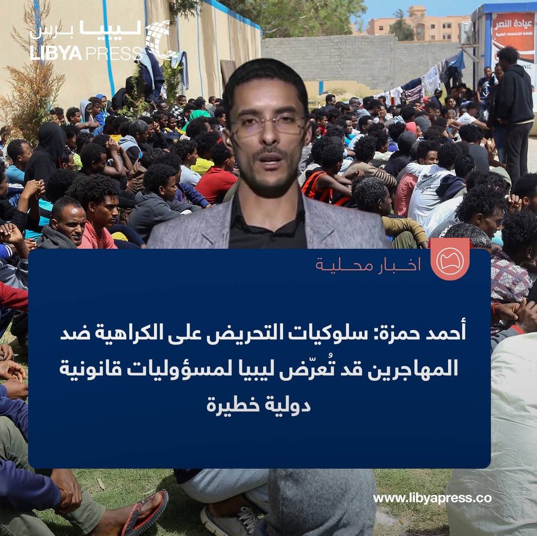 رئيس المؤسسة الوطنية لحقوق الإنسان، أحمد حمزة: سلوكيات التحريض على الكراهية ضد المهاجرين قد تُعرّض #ليبيا لمسؤوليات قانونية دولية خطيرة.