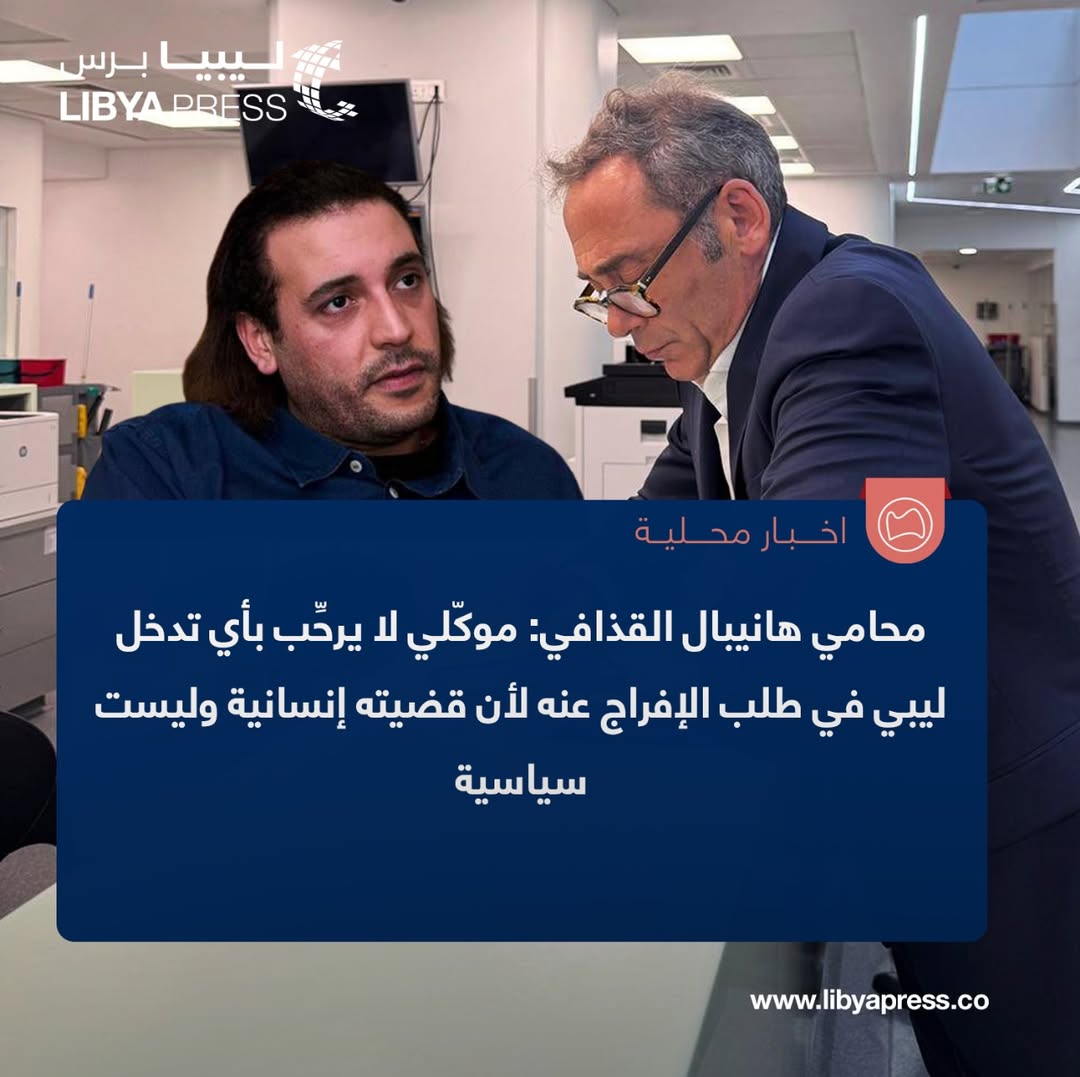 الفرنسي لوران بايون محامي هانيبال القذافي، في تصريحات لـ”الشرق الأوسط”: موكّلي لا يرحِّب بأي تدخل ليبي في طلب الإفراج عنه، لأن قضيته إنسانية بحتة وليست موضوعاً للتجاذبات أو المساومات السياسية.