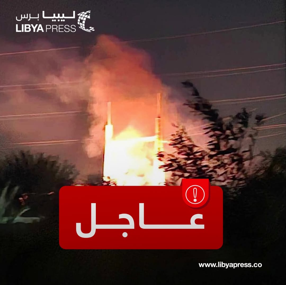 شهود عيان: اشتعال النيران في محطة كهرباء #بئر_العالم بـ #وادي_الربيع. #ليبيا_برس