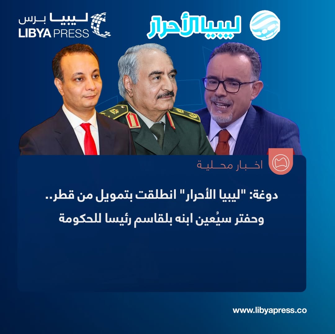 سليمان دوغة، المدير العام لقناة ليبيا الأحرار، خلال مقابلة عبر بودكاست “مع زينب تربح”: قناة ليبيا الأحرار انطلقت في أول يوم من ثورة فبراير بتمويل من قطر.