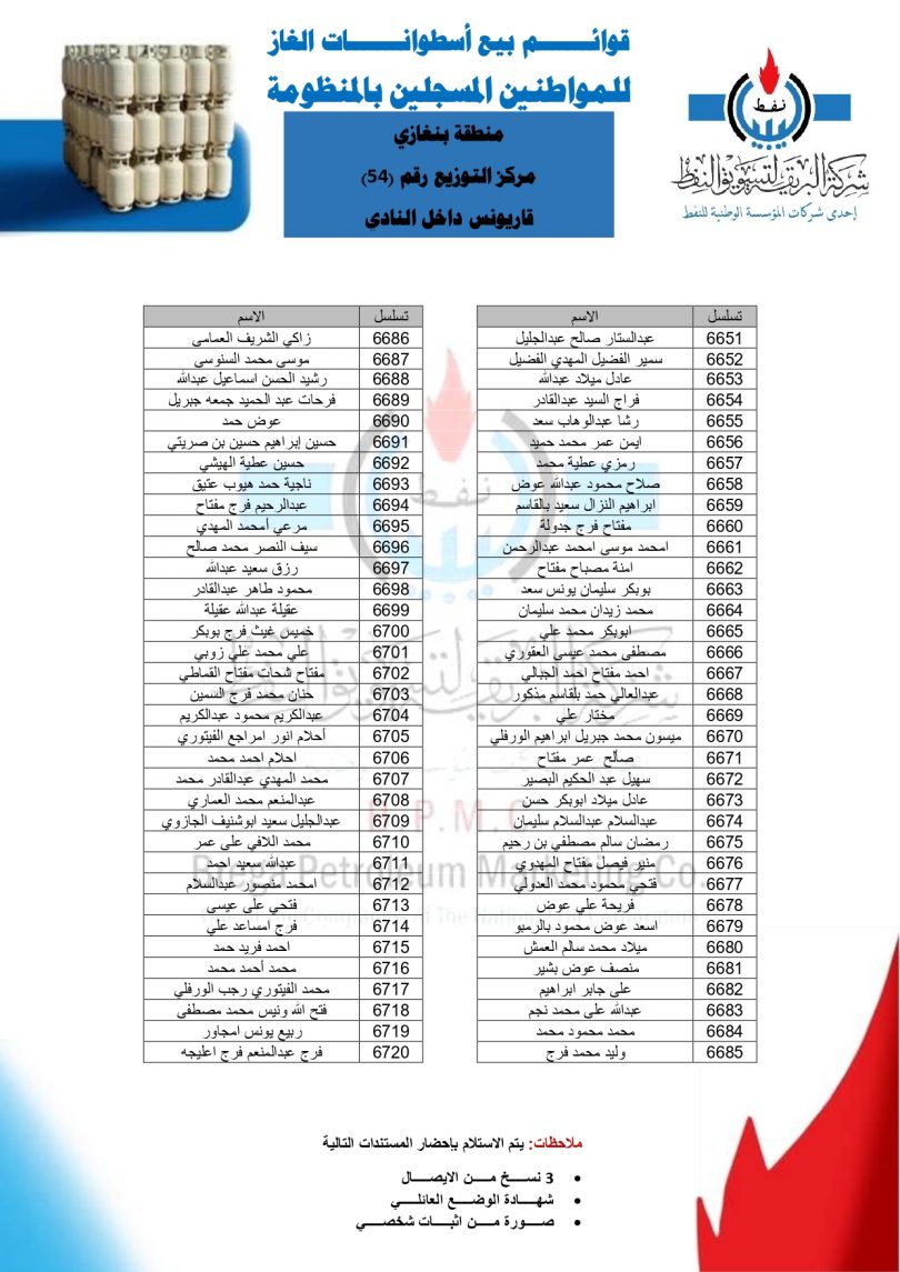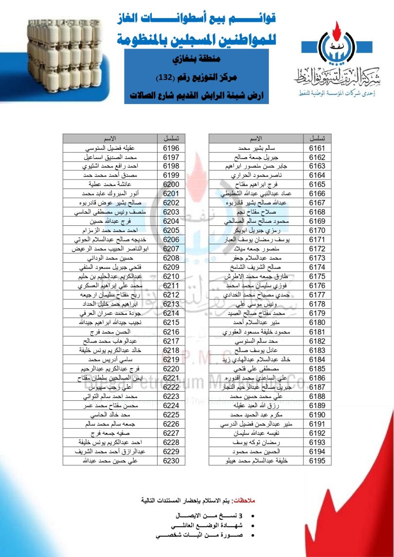 أعلنت شركة البريقة لتسويق النفط عن صدور قوائم الدفعة الحادية عشر من المستفيدين من أسطوانات الغاز المنزلي بمدينة بنغازي وضواحيها، داعيةً المواطنين المدرجة أسماؤهم إلى التوجه إلى مراكز الاستلام المعتمدة اعتبارًا من اليوم السبت، وذلك خلال مدة أقصاها عشرة أيام.