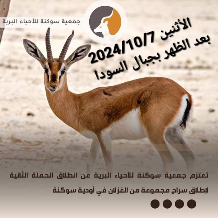 سوكنة 07 أكتوبر2024م(وال)- أطلقت جمعية سوكنة للأحياء البرية ضمن حملتها الثانية قطيع من الغزلان مكون من ستة من الاناث والذكور بمنطقة الجبال السوداء لتنتشر في الأودية الواقعة في المنطقة.